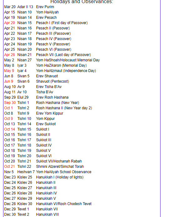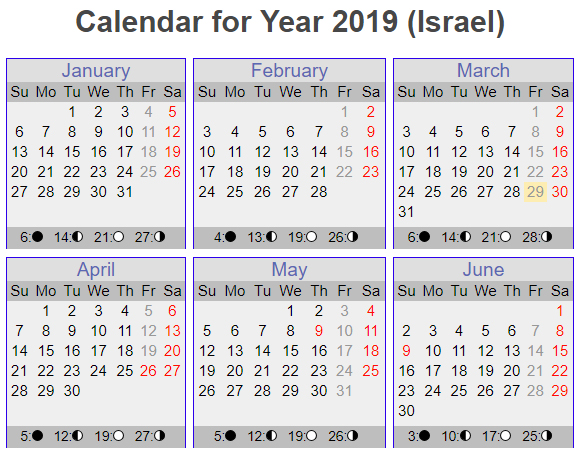 2019 이스라엘 공휴일/국경일, 달력, 수도, 언어, 면적, 인구, GDP